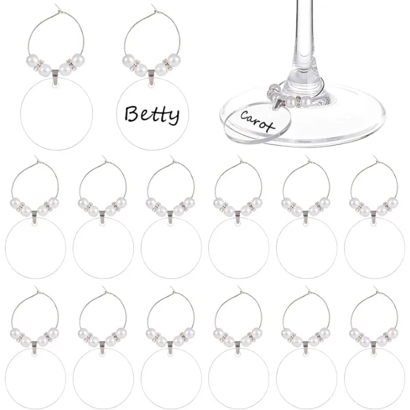 20pcs Acrylic Wine Glass Charms Goblet Marker with Brass Wine Glass Charm Rings Flat Round White 65mm  Read more