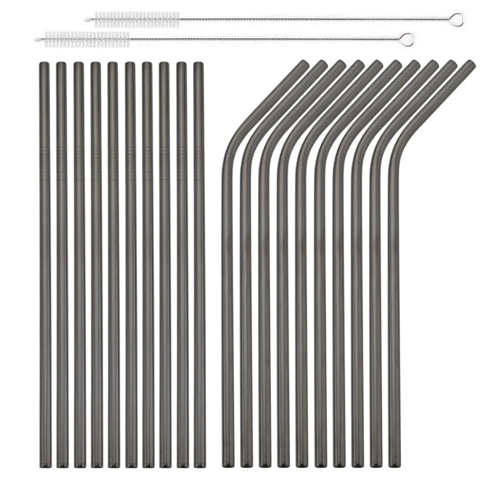 20Pcs Reusable Black Straw Set 304 Stainless Steel Straw Straight Bent Drinking Straw With Cleaning Brush Home Bar Accessory