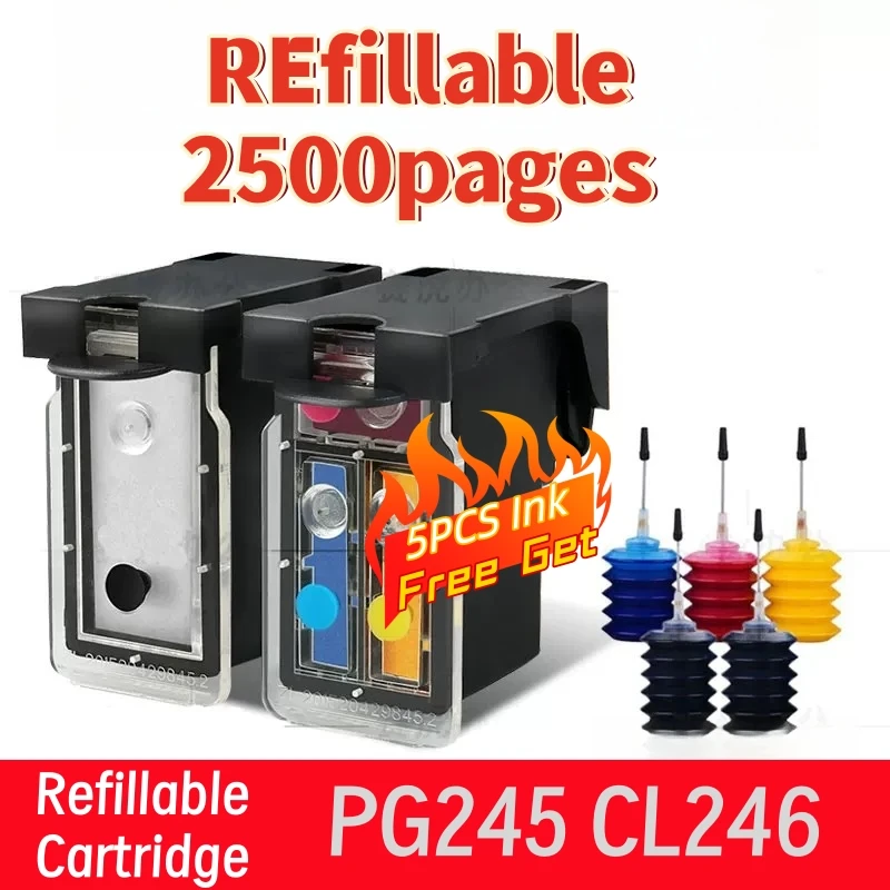 Refillable Ink Cartridge PG245 CL246 Replacement for Canon Pixma MG2922 MG2924 MG3020 MG3022 TR4520 TR4522 MX490 MX492 Printer