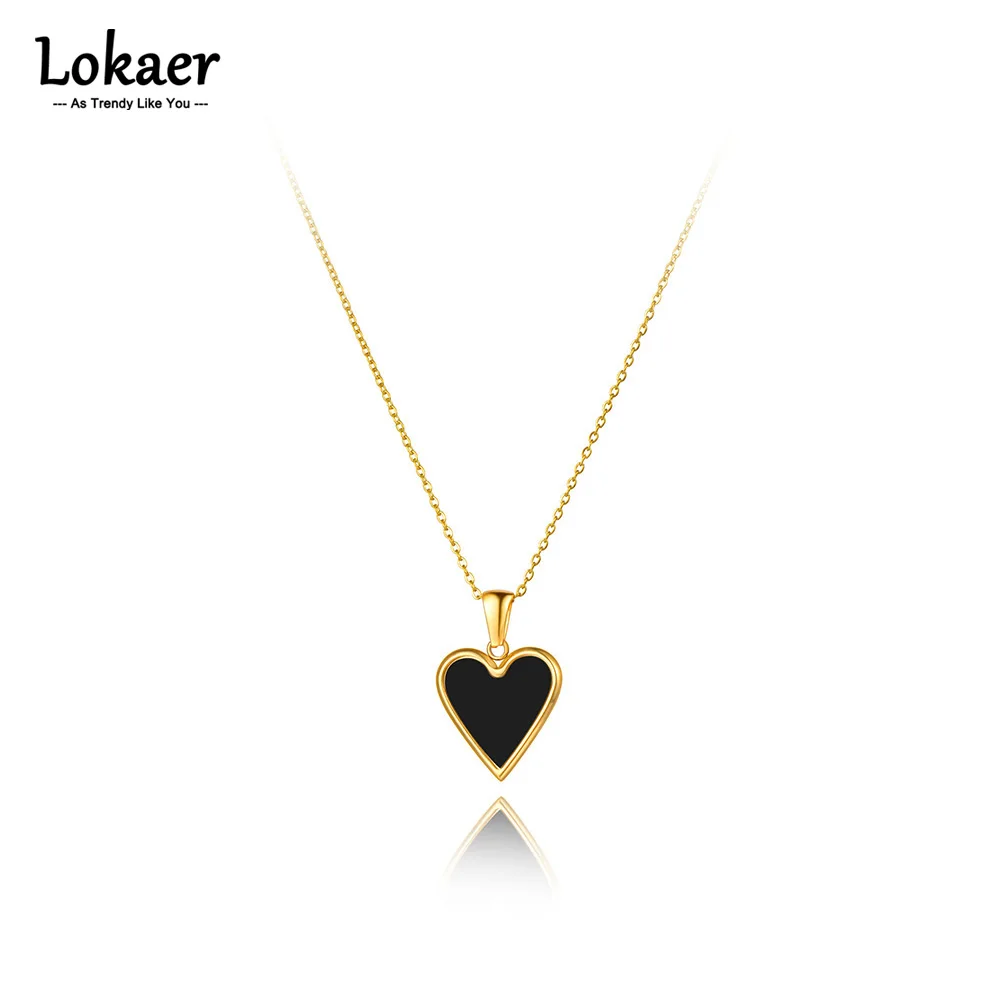 Lokaer Titanium Stainless Steel Pendant Necklaces Fashion Acrylic Shell Heart Charm Chokers Necklace For Women N22035