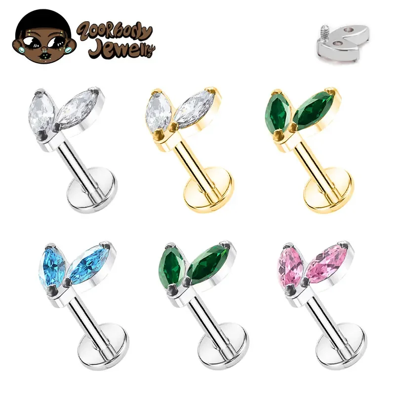 ASTM F136 Titanium Piercing Single Tiny Marquise CZ Internally Threaded Flat Back Labret Helix Tragus Piercing Labret Pierced