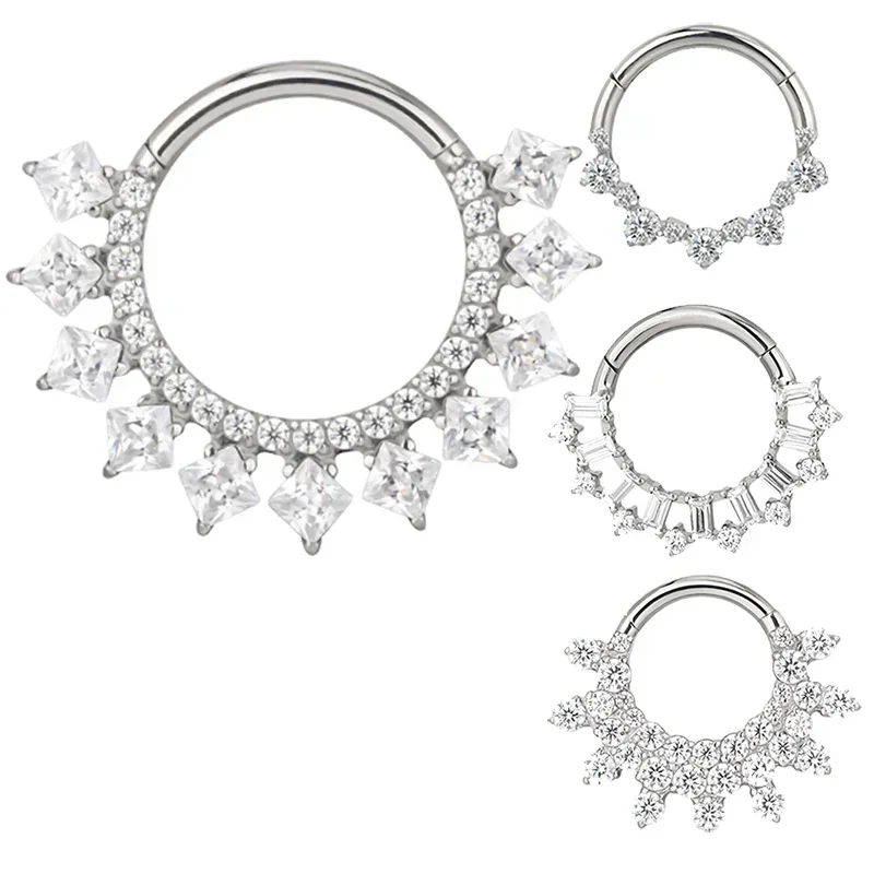 G23 Titanium EAR Nose Ring PIERC Zircon Surround Segment Ring Hoop Face Hinged Clicker Labret Ear wheel Cartilage Piercing