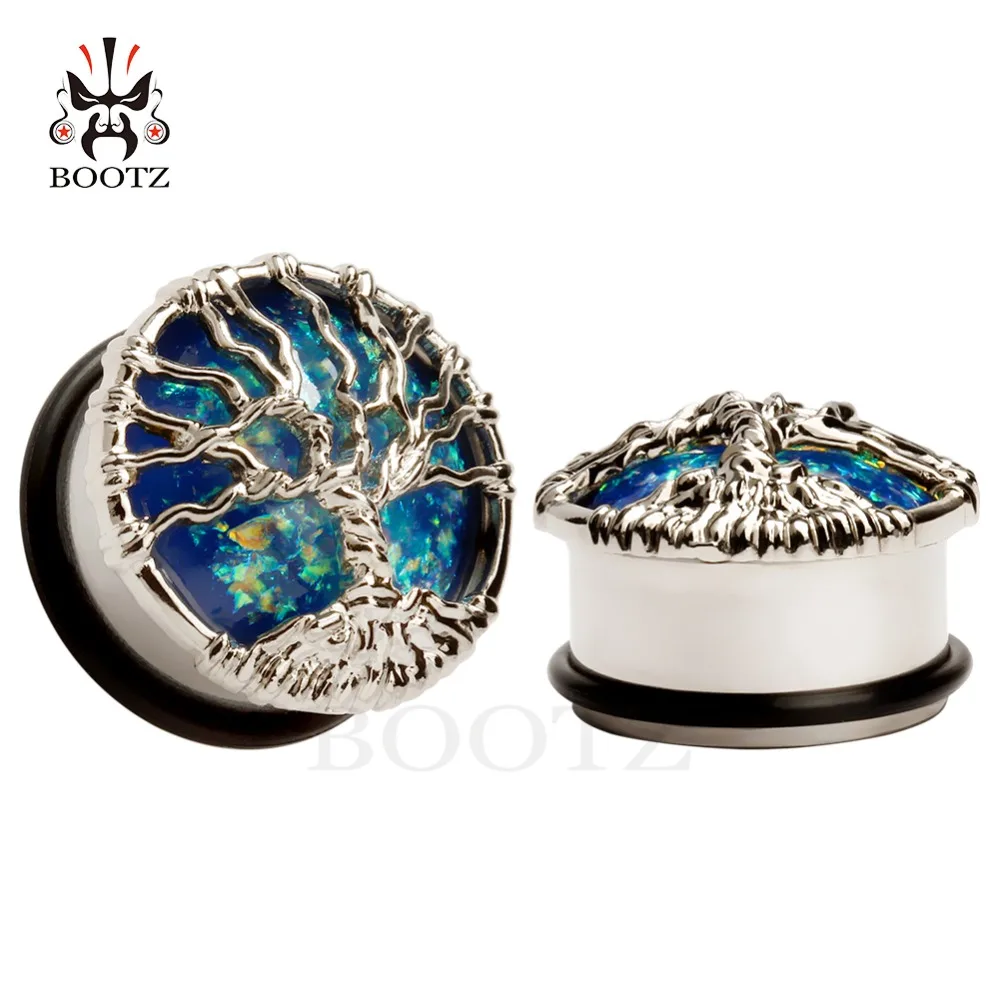 KUBOOZ Ear Plug Tunnels Gauges Piercing Body Jewelry Wishing Tree Stainless Steel Expander Stud Fashion Jewelry 00G 10mm to 25mm