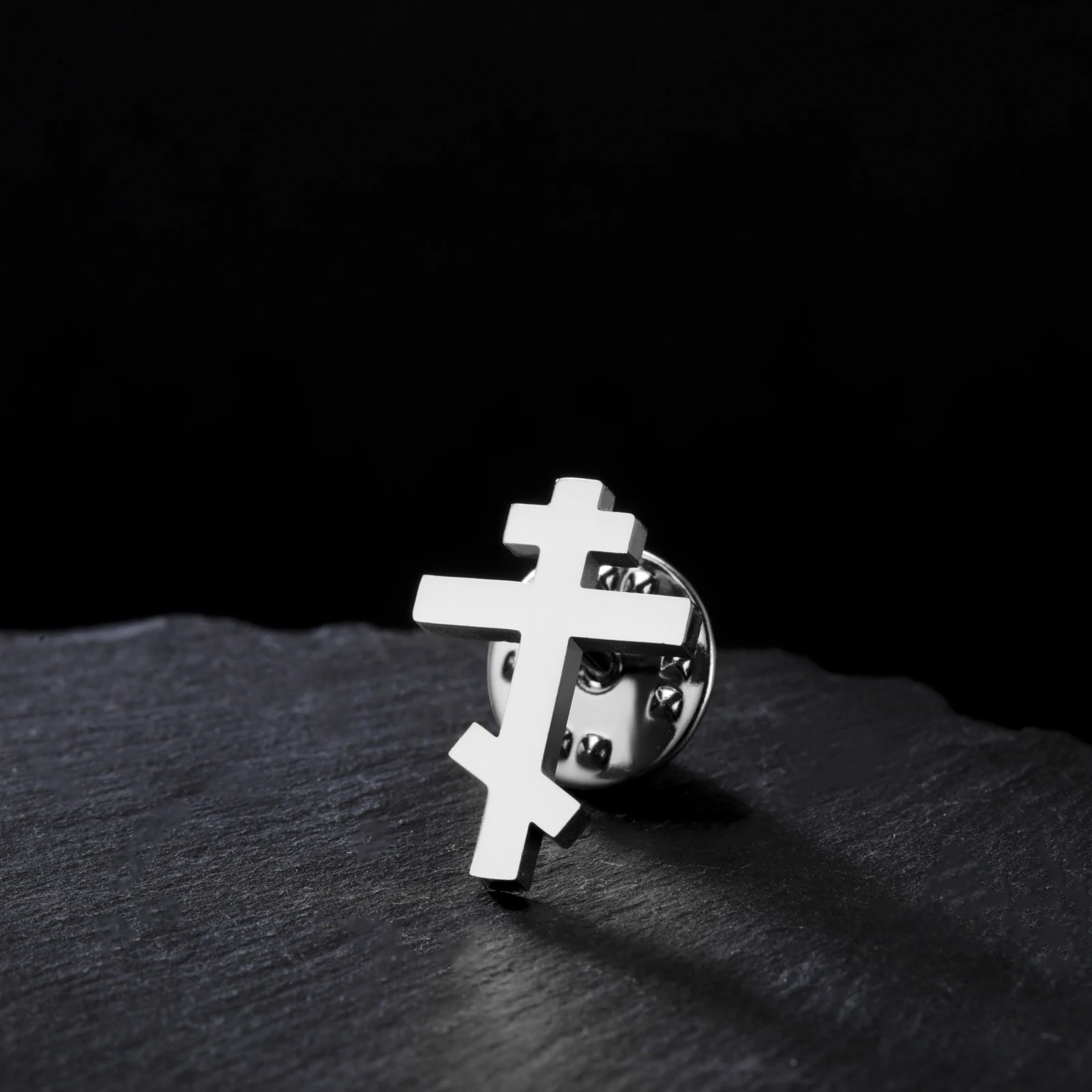 LIKGREAT Orthodox Cross Brooch for Men Catholicism Symbol Pin Stainless Steel Jewelry Russian Greek Catholic Gift for Shirt Suit