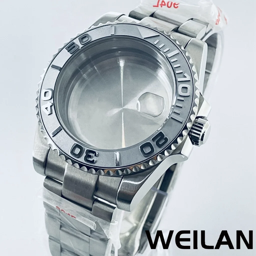 40mm VK63 Silver Watch Case Blue Green Black Silver Insert With Coated Glass For VK63 Quartz Chronograph Movement Steel Bracelet