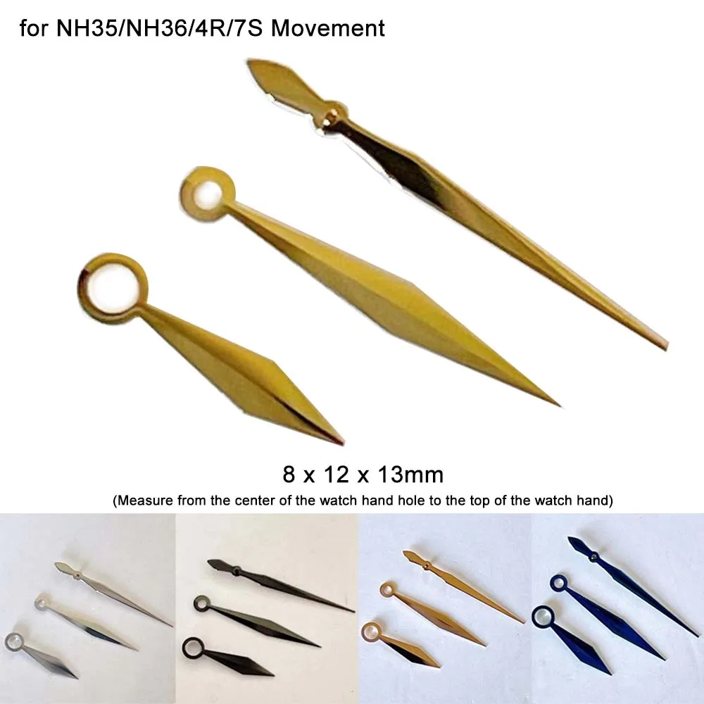 Sword Shaped Watch Hands for NH35/NH36/4R/7S Movement No Luminous Gold/Rose/Blue/Black/Silver Watch Pointers Accessories