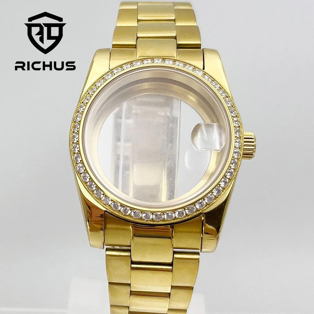 RICHUS NH35 Case 36mm 39mm Gold Watch Case Sapphire Glass Fit NH35 NH36 ETA2824 PT5000 Miyota8215-DG Automatic Movement