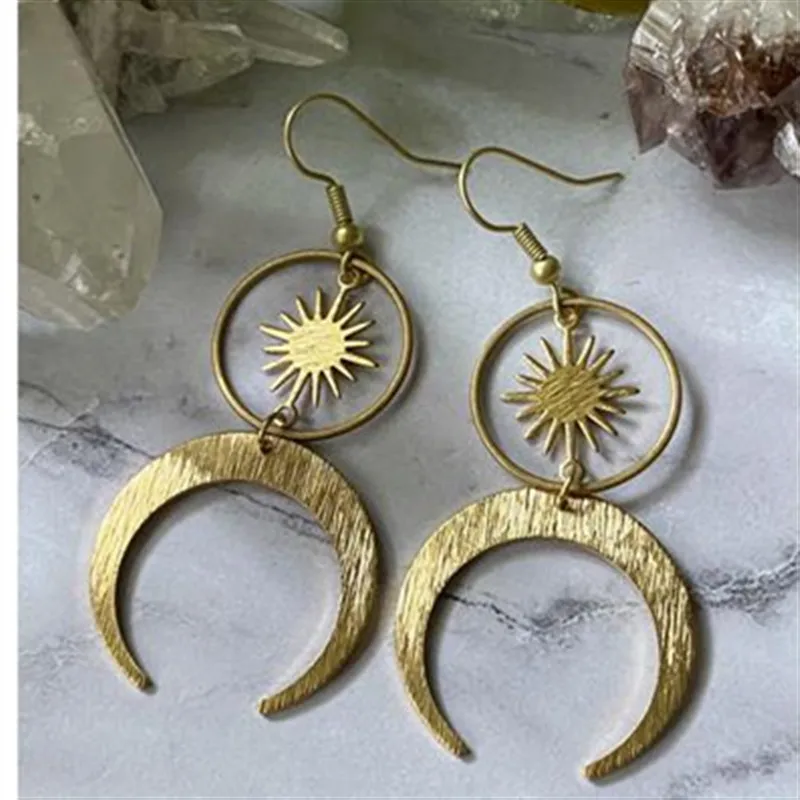 Celestial Sun And Moon Earrings Crescent Phase Boho Witchy Brass Or Antique Silver Color Jewelry 2020 New Women Gift Girlfriend  Read more