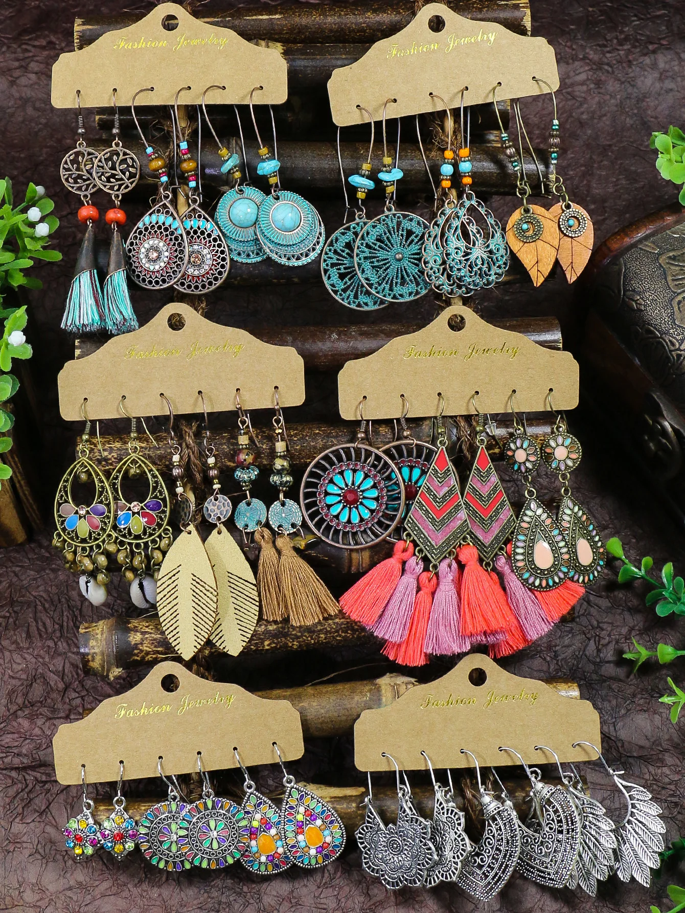 Ethnic Style Antique Alloy Earring Retro Hollow Earrings Bohemian Tassel Leaf Heart Shaped Pendant Accessories  Read more