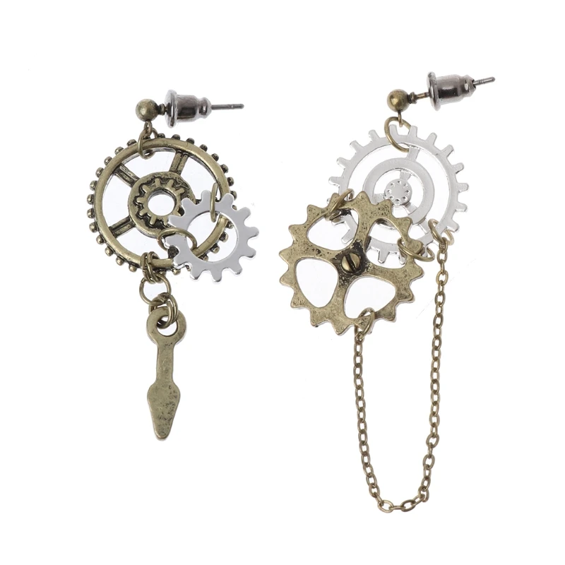 JAVRICK 1 Pair Women Steampunk Antique Female Gear Pendant Dangle Long Hook Earring Club Jewelry Vintage