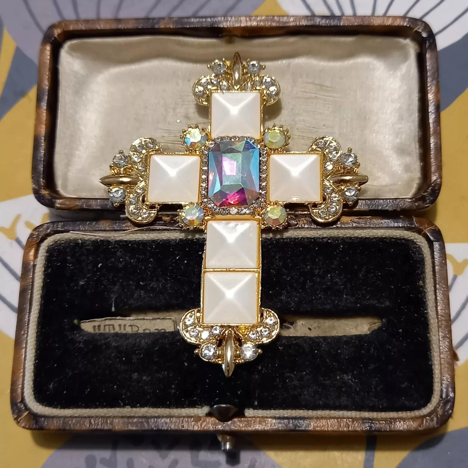 Vintage Palace Baroque Enamel Cross Brooch Creative Vintage Suit Jacket Jewelry Wedding Party Pin