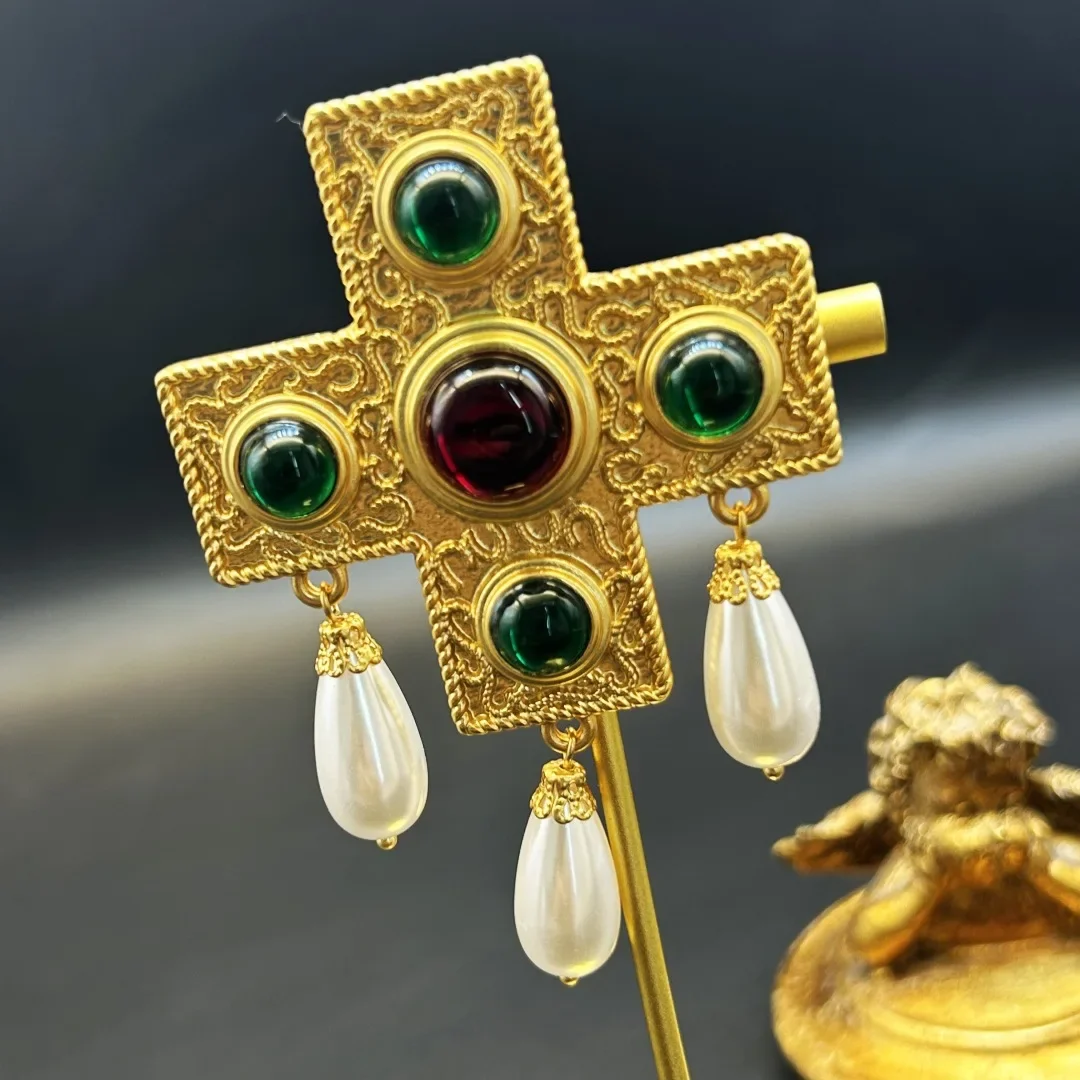 Medieval Vintage European and American Court Retro Cross Brooch Dual-purpose Heavy-duty Quality High-end