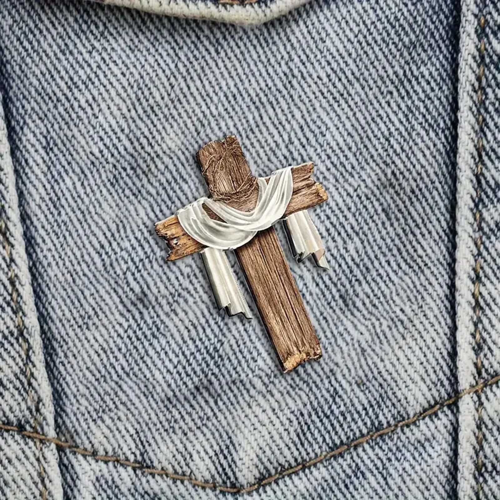 A Vintage Classic Style White Scarf Cross Pin Brooch for Followers of Jesus, Faith Gift