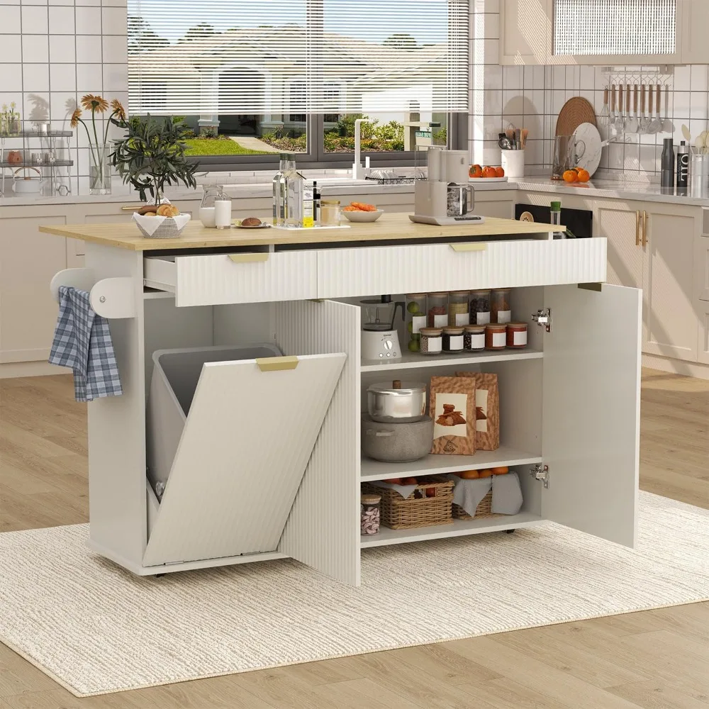 Kitchen Island on Wheels with Storage, 53" Portable Rolling Kitchen Island Wood Table with Drop Leaf, Mobile Storge Islands