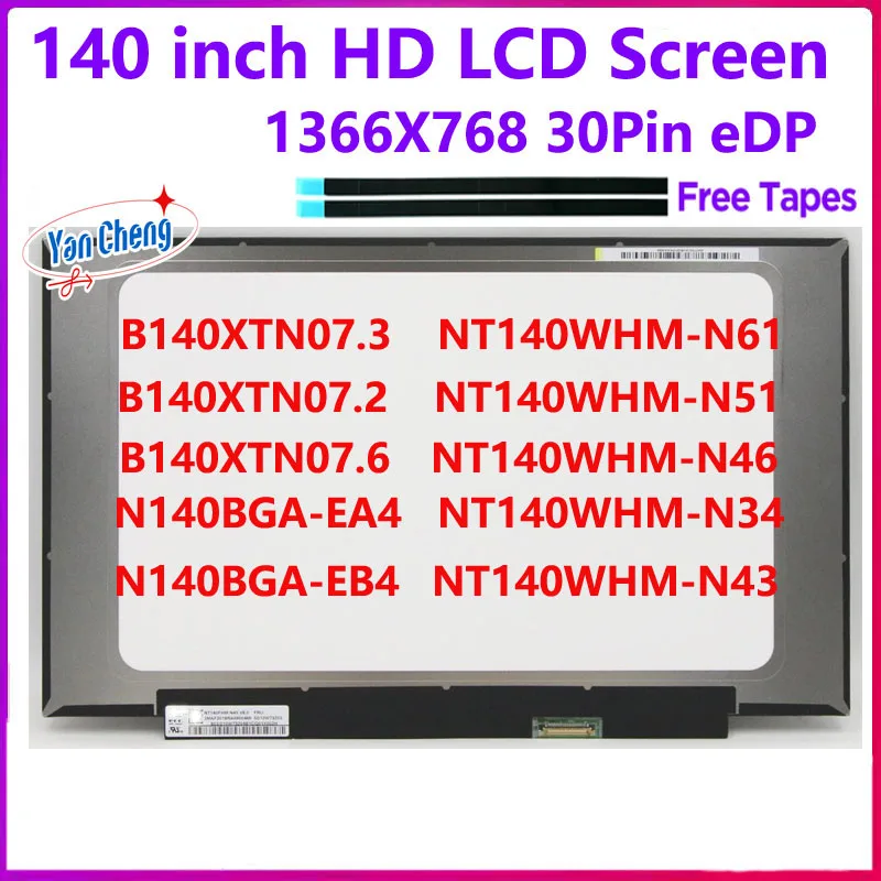14 Inch Laptop LCD Scree B140XTN07.3 B140XTN07.2 07.6 NT140WHM-N46 N34 N43 N51 N61 N140BGA-EB4 N140BGA-EA4 1366x768 30 Pins EDP