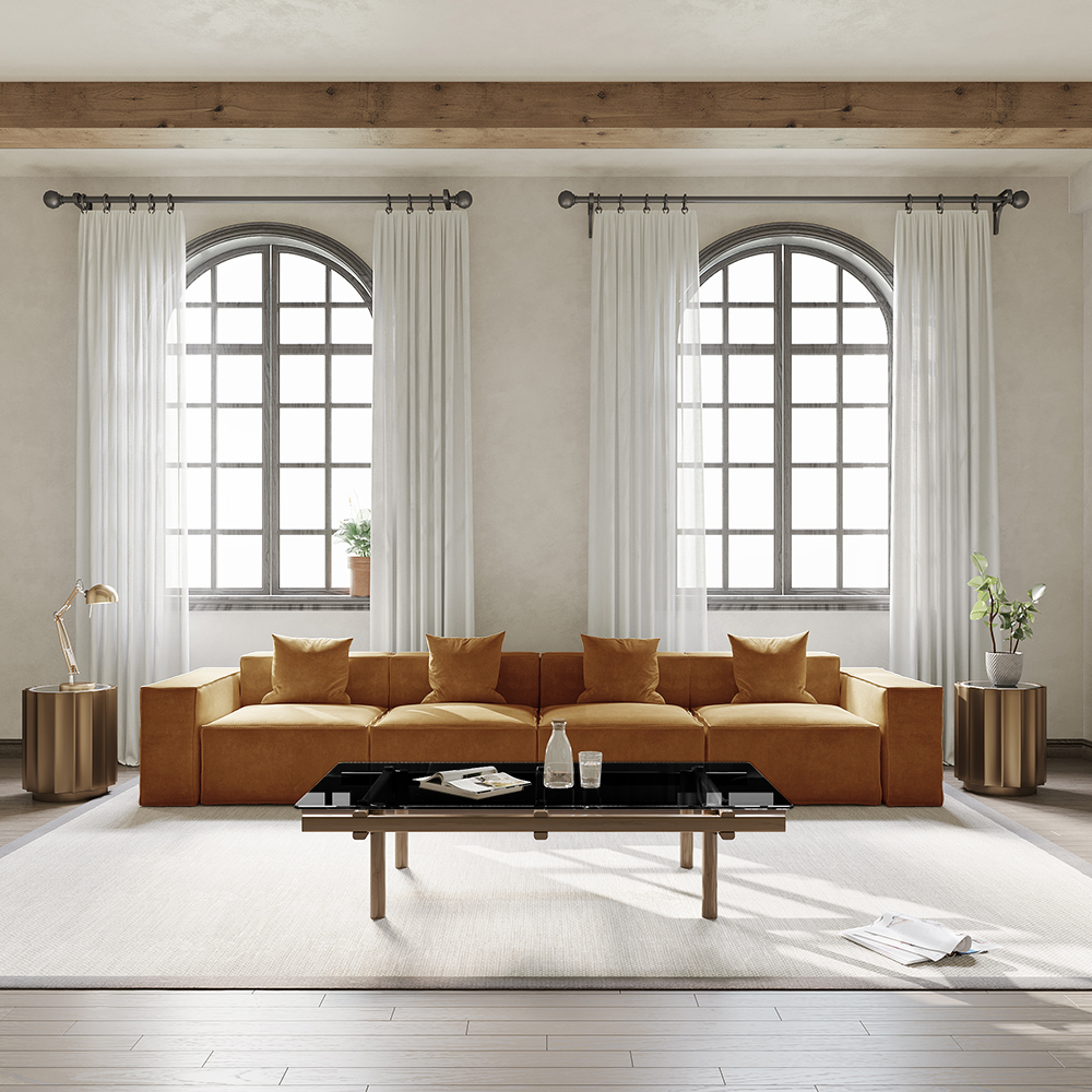 147.63’’ Minimalist Modular Sofa, Track Arm Sofa Deep Seat Couch, Anti-scratch and Water-proof, Yellow