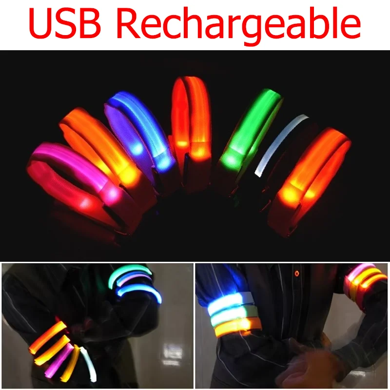 Outdoor Night Running Armband USB Rechargeable LED Light Sports Safety Belt Arm Leg Warning Wristband Cycling Bike Bicycle Light