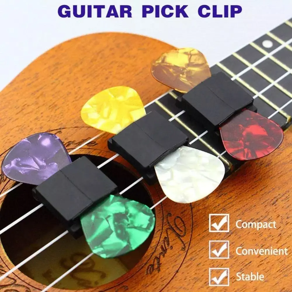 Black Plastic Stick on Guitar Pick Holder for Acoustic Ukulele / Guitar / Bass with Adhesive Back, Convenient Picks Placement