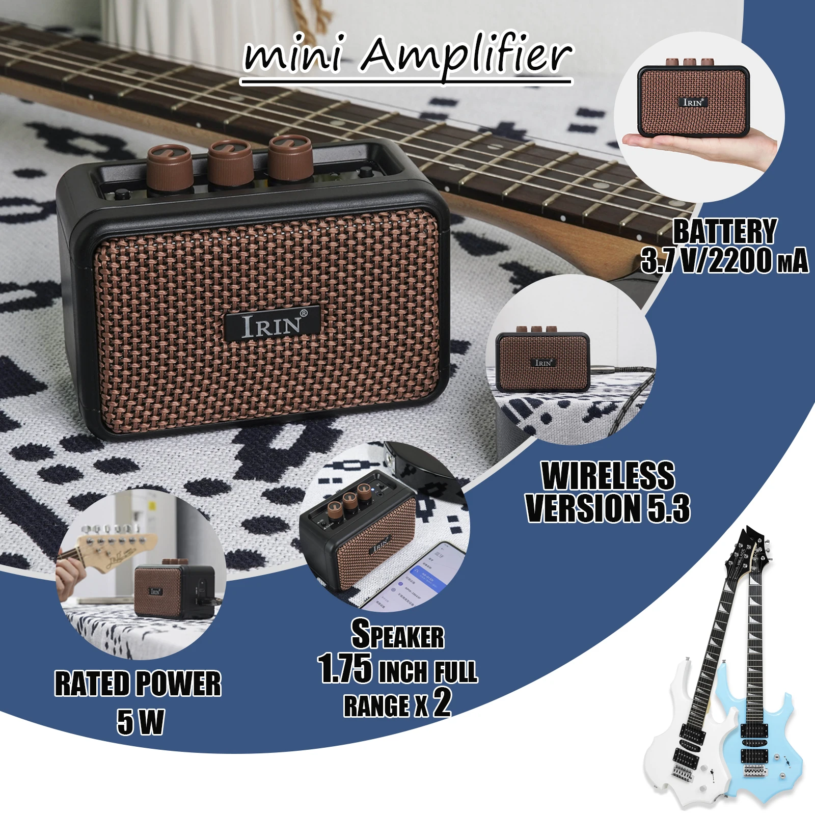 IRIN Amplifier Bluetooth Audio AG-01 Portable Speaker Electric Guitar Mini Amplifier 5W Output Electric Guitar Accessories