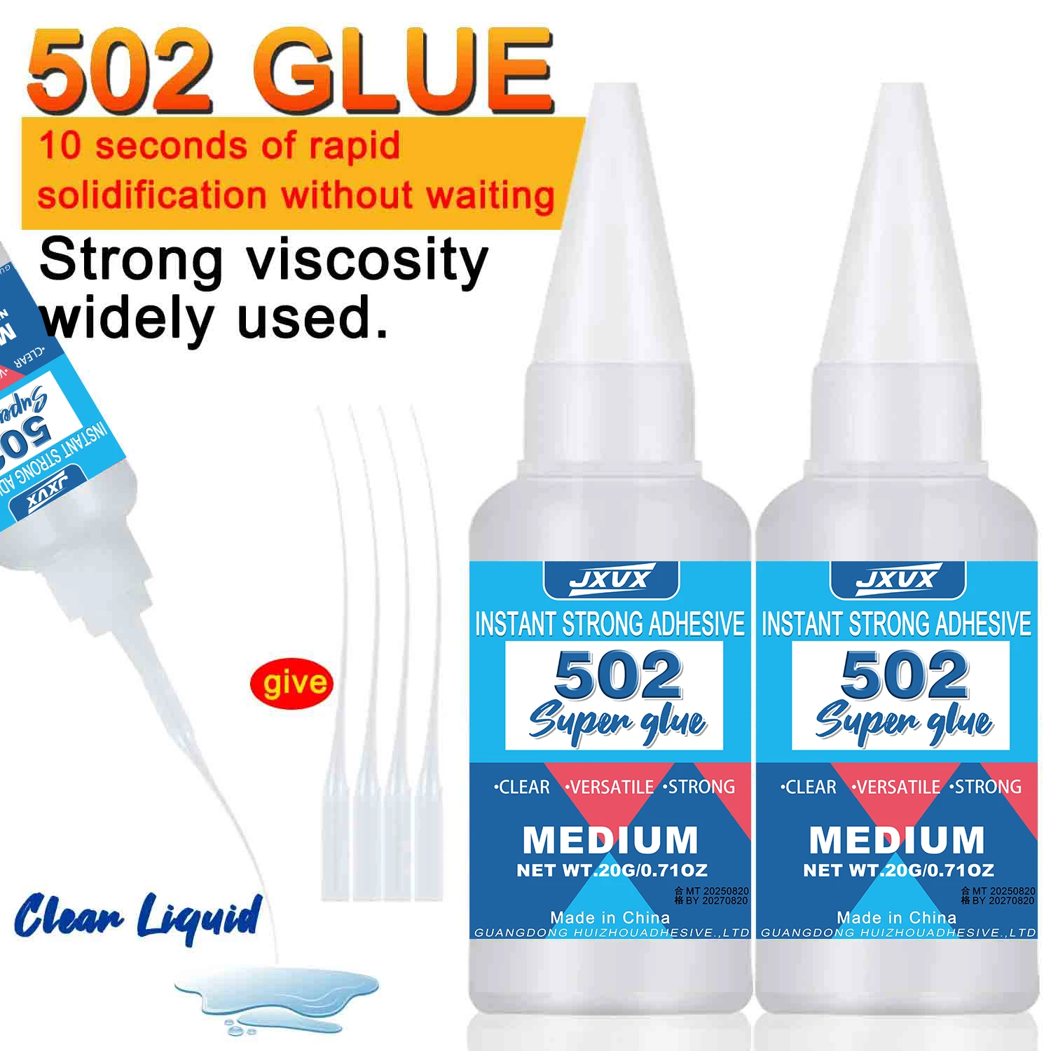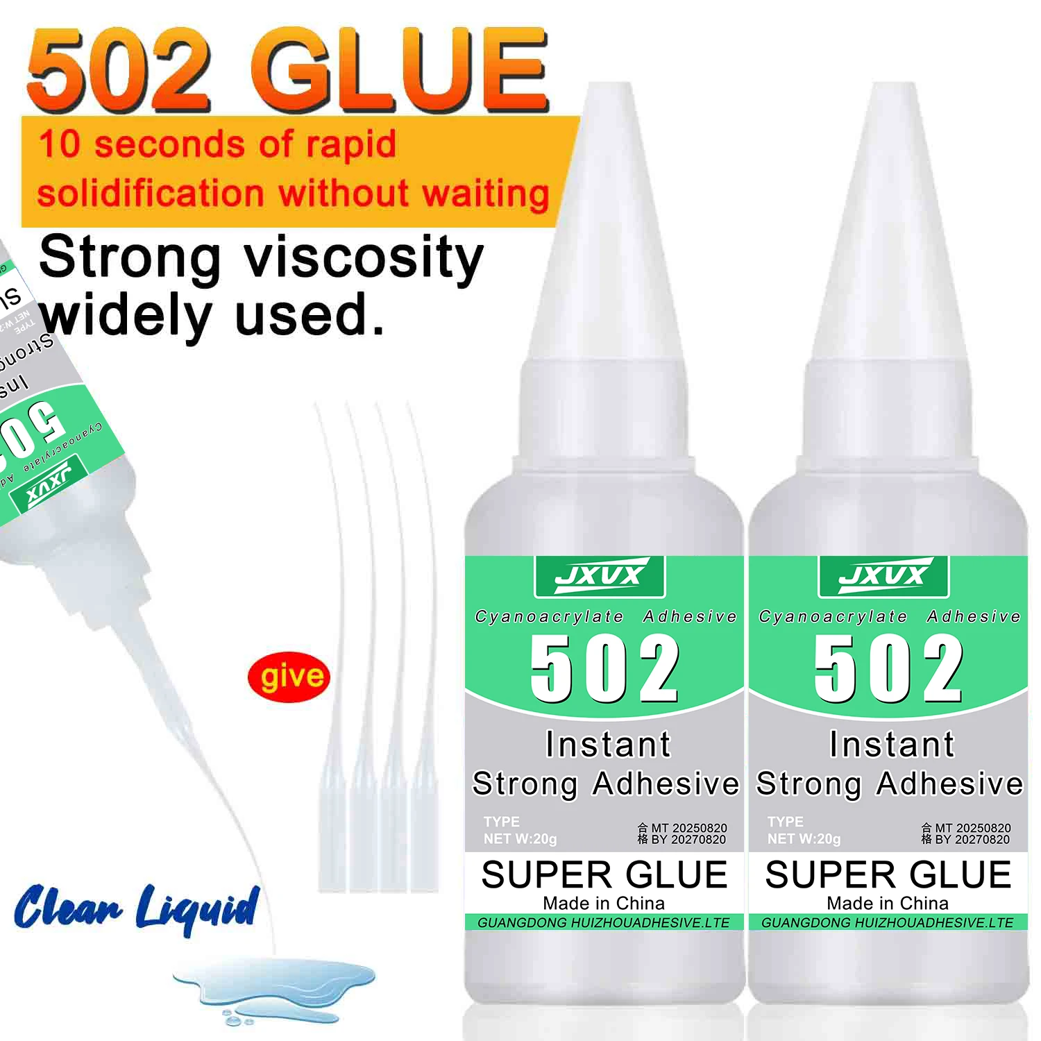 JXVX 502 Instant-Dry Super Glue Cyanoacrylate adhesive, 502 high-strength instant adhesive cures in 10 seconds. Suitable for bonding and repairing metal, glass, and wood. 20ml, 1-5 pcs.