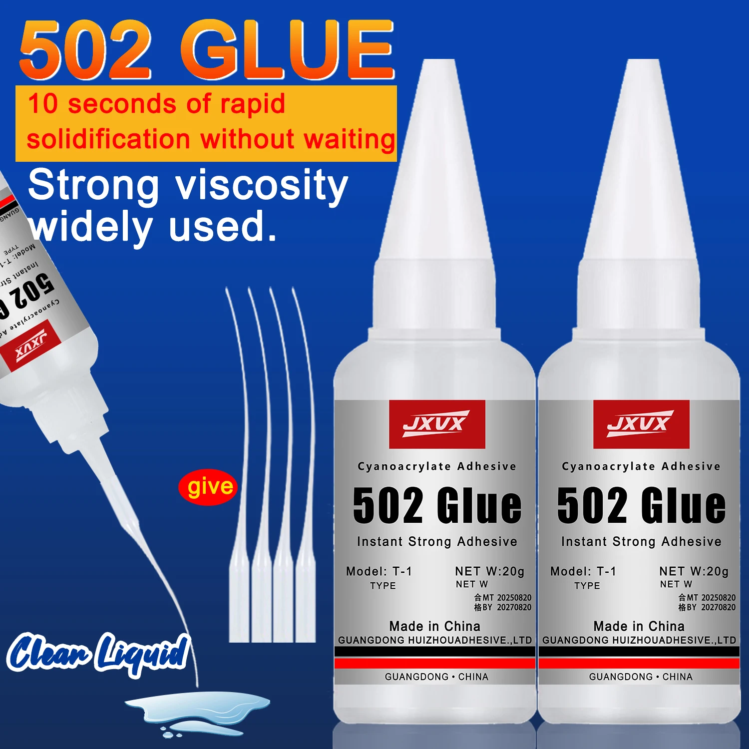 JXVX 502 Multi-Purpose Super Glue Cyanoacrylate 10-second fast curing, waterproof adhesive Ideal for leather, toys, furniture repair Residue-free strong bonding 20ml 1-5pcs.