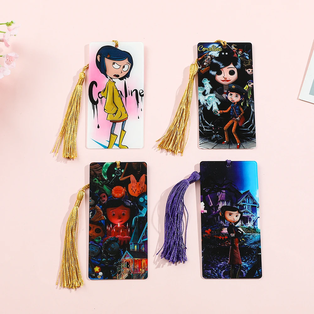 Anime Coraline The Secret Door Bookmarks For Book Lovers Gifts Tassel Acrylic Bookmarks For Fans Family Favorites Reading Marker