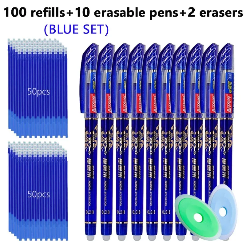 112pcs/set 0.5mm Erasable Gel Pen Classic Patterned Pen Friction Magic 3-color Gel Pen Blue Black Red Writing Supplies