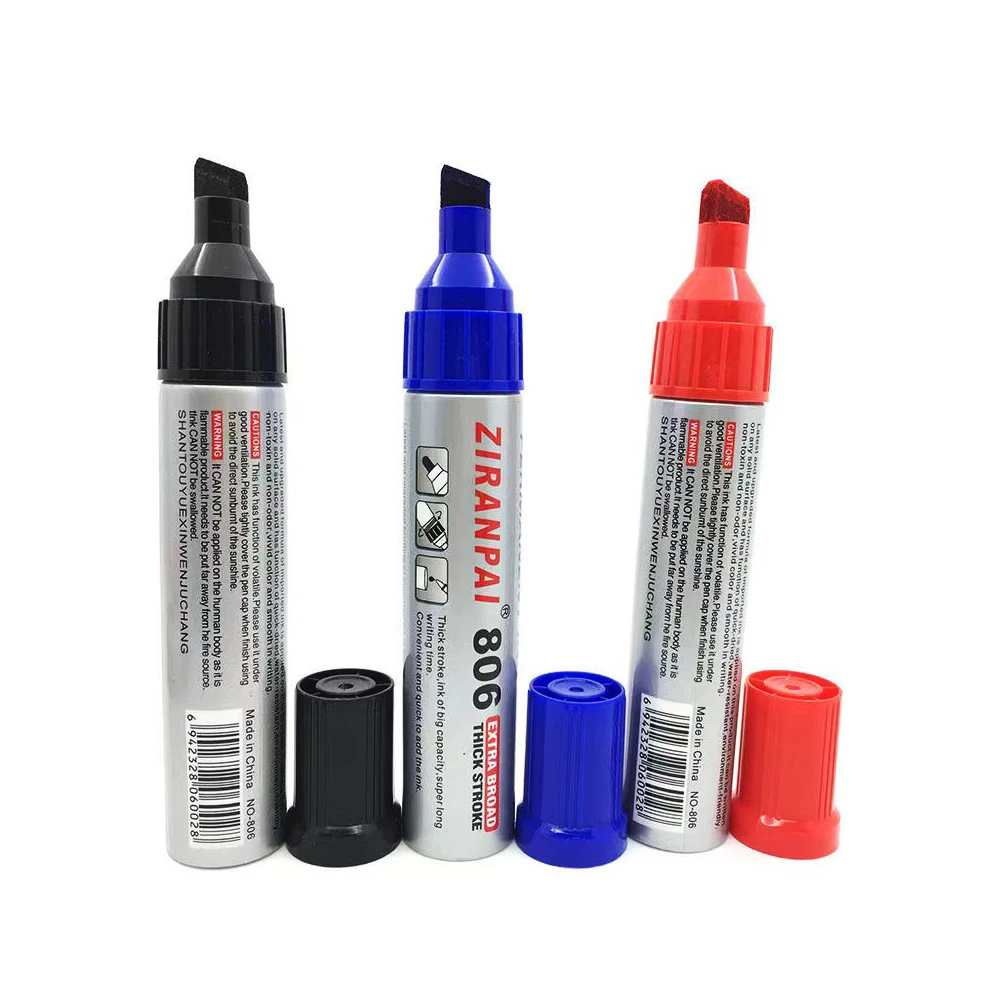 3 Color Large-Capacity Marker 10mm Nib Oil-Based Big-Ended Marker Pen Refillable Waterproof Non-Erasable