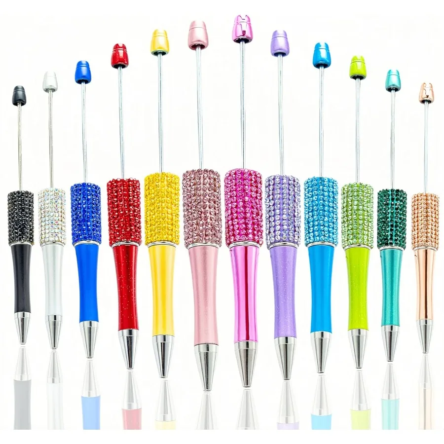 12Pcs Beadable Pens Bulk Diamond Ballpoint Pens Mult Retractable Writing Pens Bead Pens DIY Focal Beads Pens Making Kit Gifts f