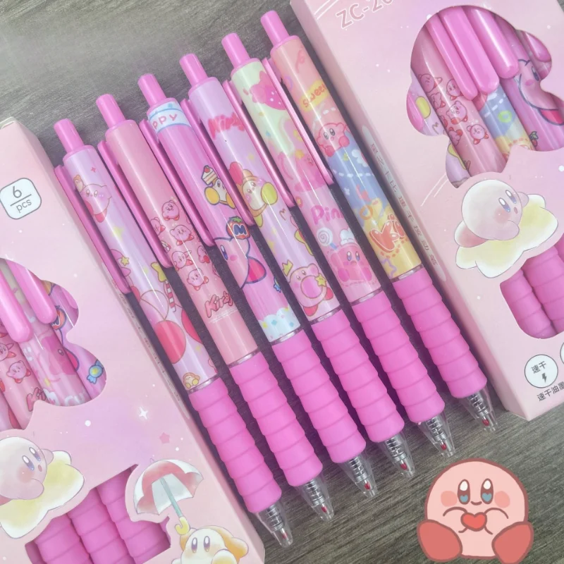 6pcs Kirby Gel Pen Anime Cute 0.5MM Black Ink Neutral Pen Cartoon Pressing Ballpoint Pen School Stationery Office Supplies Gift