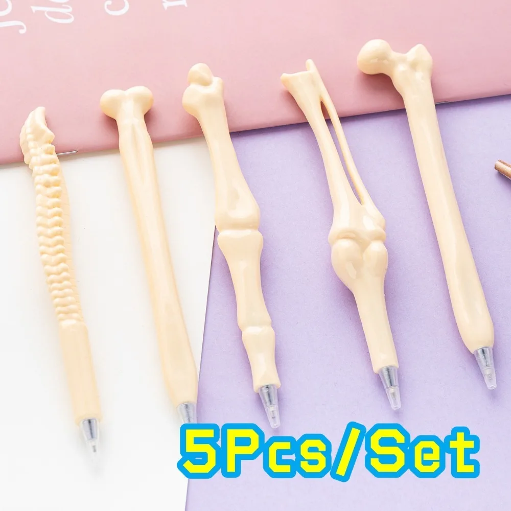 5Pcs Type 1.0 Bone Ballpoint Pens Length 14.7cm Blue Ink Bone Shaped School Pens Press Bone Bone Shape Ballpoint Nurse
