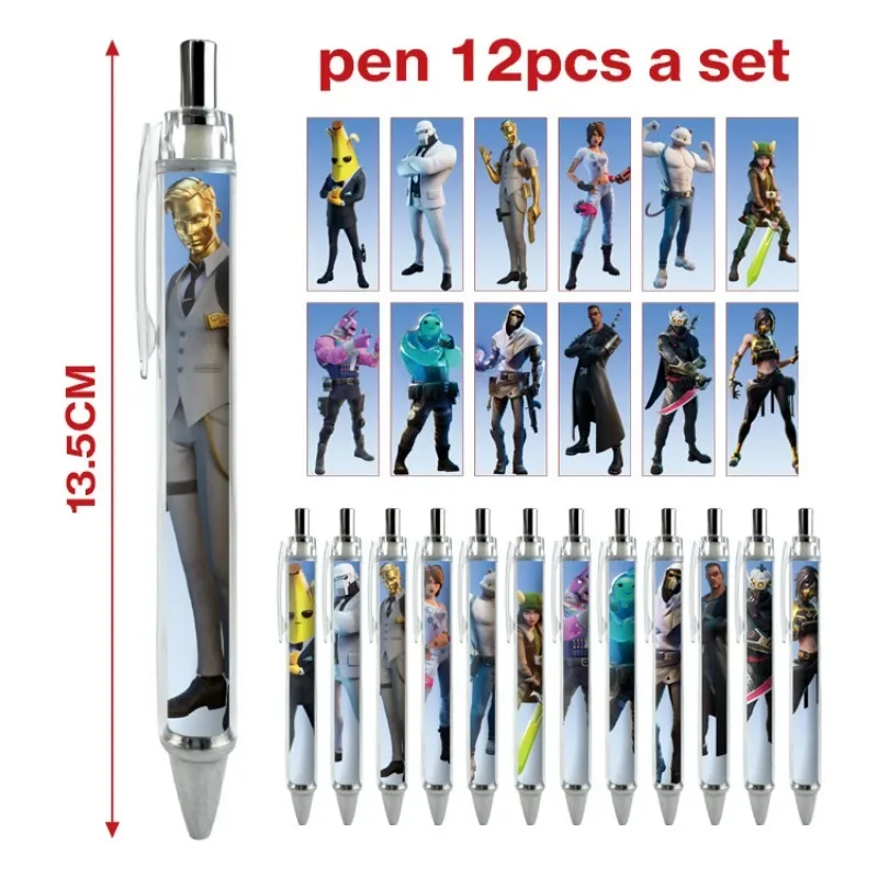 12pcs/set Fortnite Shooting Game Peripheral Ballpoint Pen Set Cartoon Anime Print Student Stationery Office Signature Supplies