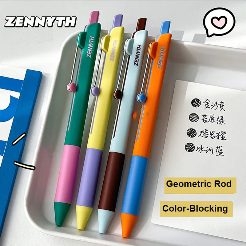 ZENNYTH New Aesthetic Geometric Pen 0.5mm 2pc Colorful Ergonomic Rod Gel Ink Pen for Journaling Creative Package Value Gift Idea