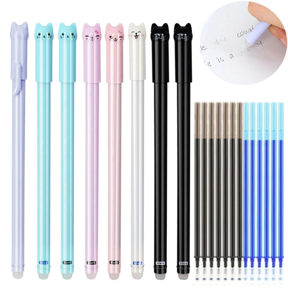 26Pcs/Set New Creative Cat Erasable Gel Pens Set 0.5mm Blue/Black Refills Rod Washable Handle School Office Writing Stationery