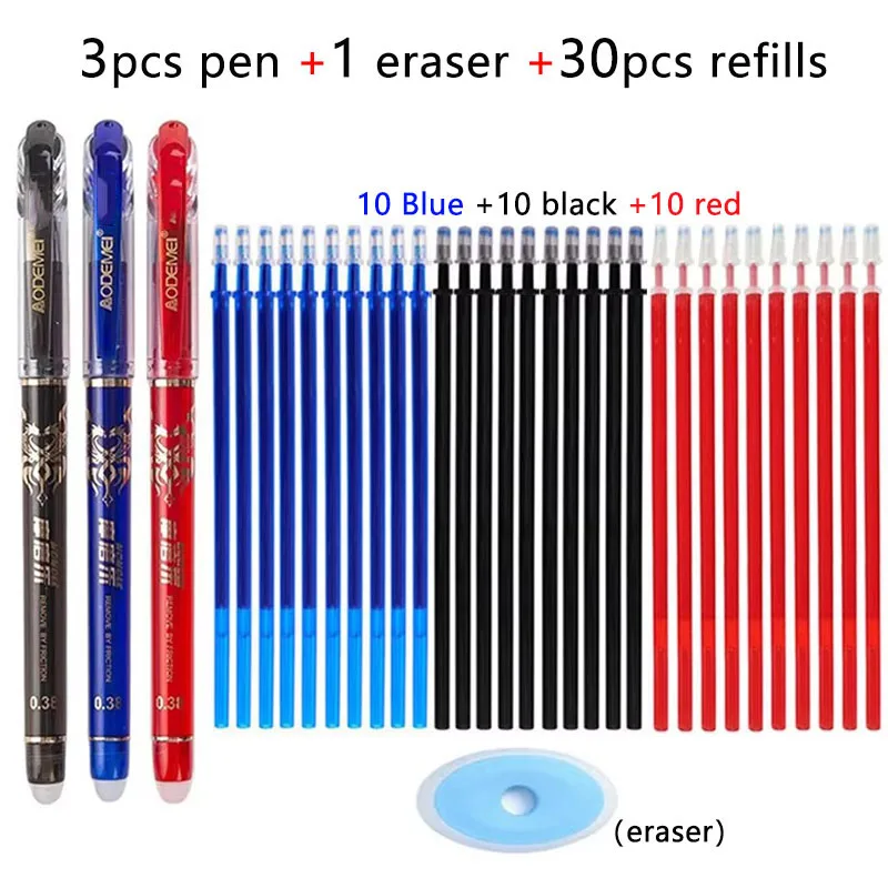 3 in 1 Erasable Gel Pen Set 0.5mm Black Blue Red Refills Multicolor Pen Washable Handle Office School Kawaii Stationery
