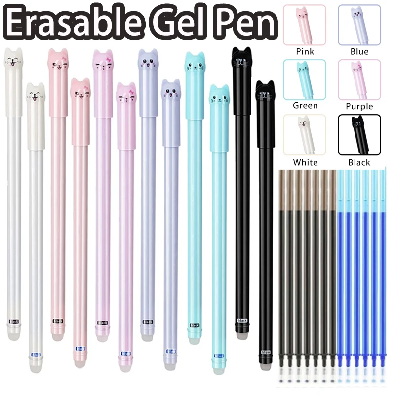 6/12Pcs/Set 0.5mm New Creative Cat Erasable Gel Pen Set Washable Handle Smooth Writing Black Blue Magical Erasable Refill Rod