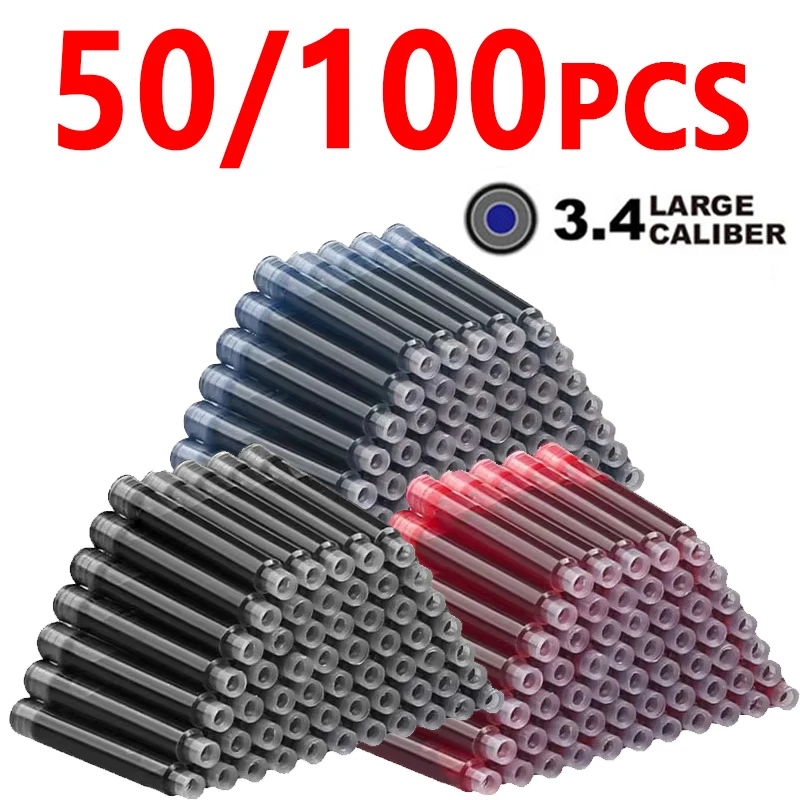 50/100pcs Fountain Pen Ink Cartridges Black Blue Red Color Set of 3.4 mm Refill Ink Cartridges Bore Diameter High Quality