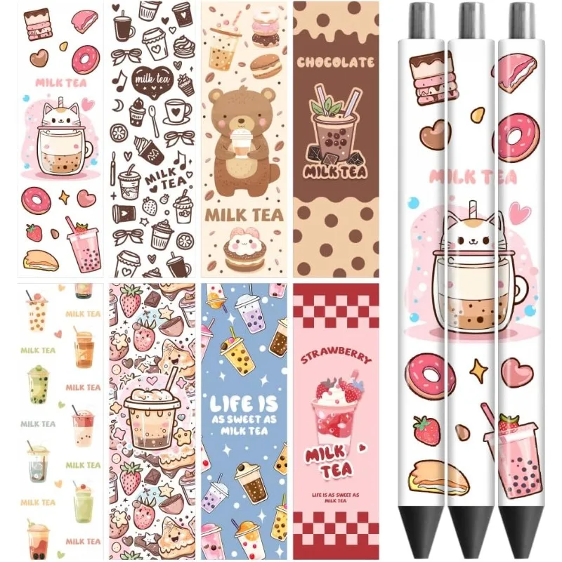 1Set UV DTF Pen Wraps Transfer Sticker Milk Tea - 48pcs Waterproof Good HD Print UV DTF Pen Decals for Personalized DIY Pencil