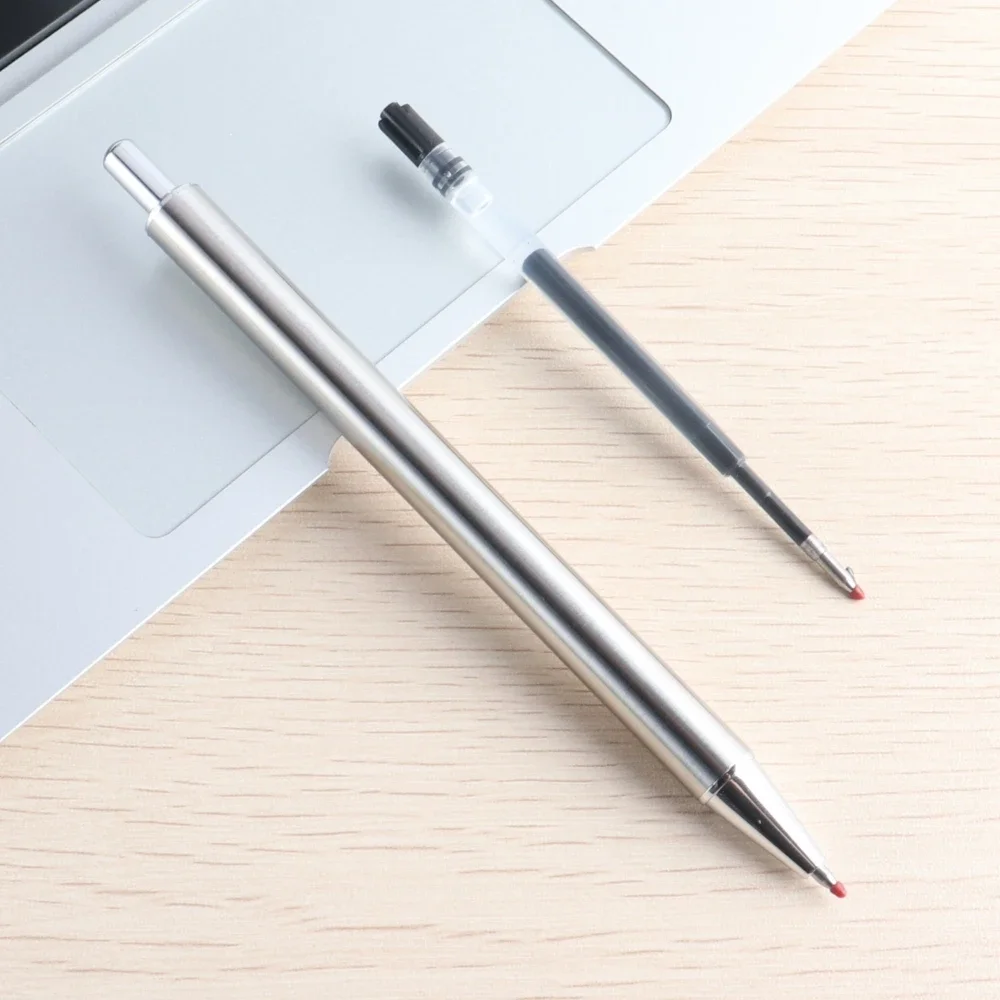 Metal Gel Pen Stainless Steel Push style Gel Pens 0.5mm Blue Black Ink Student School Stationery Supplies Silver Pen