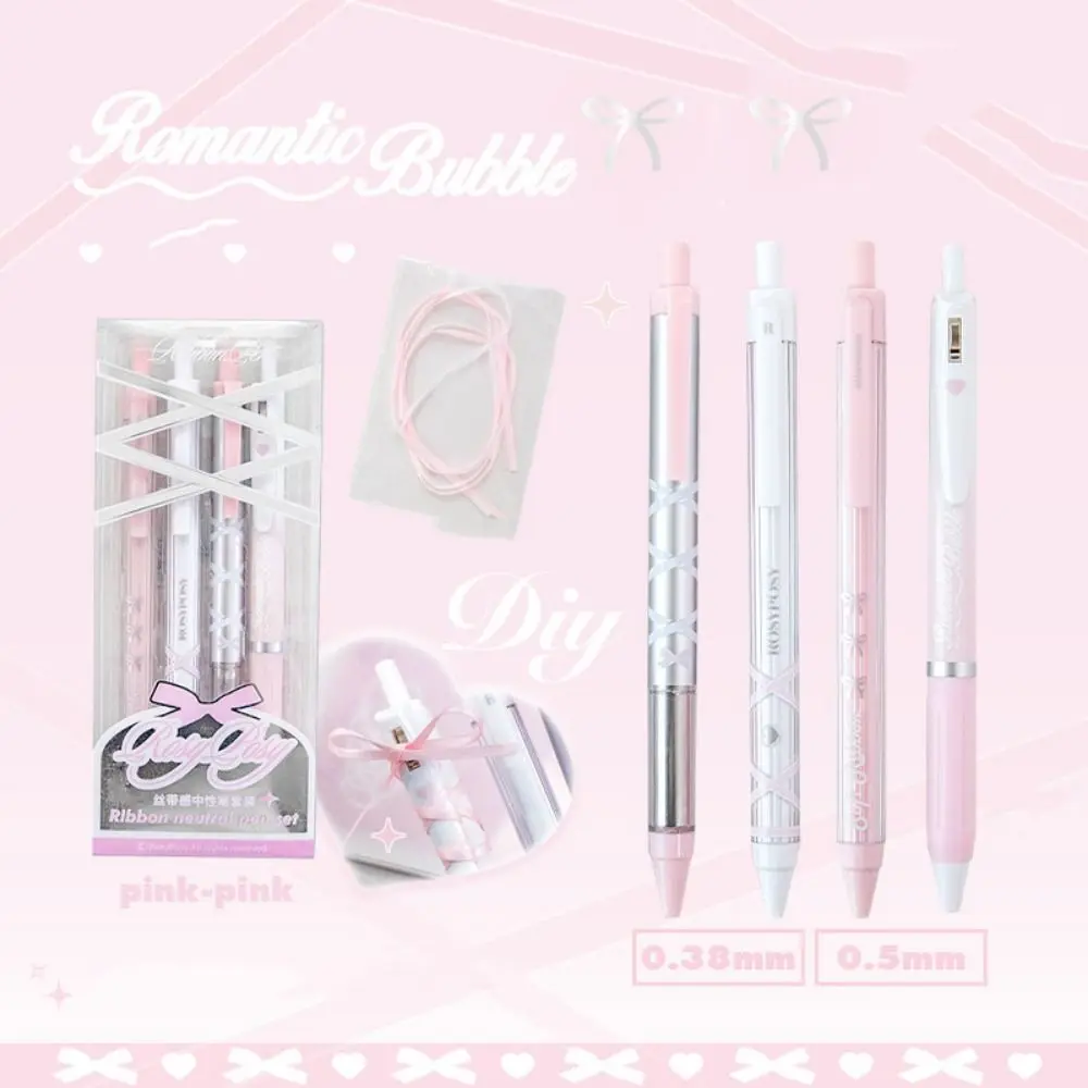 4pcs/set Ballet Strap Ballet Series Gel Pen Ribbon Press Black Ink Press Gel Pen Neutral Pen Glossy Sensation