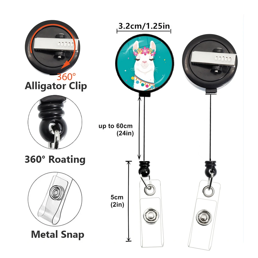NO PROB LLAMA Black Retractable Badge Reel Work Card Clip ID Name Card Display Tag Staff Card Animal Alpaca Badge Holder
