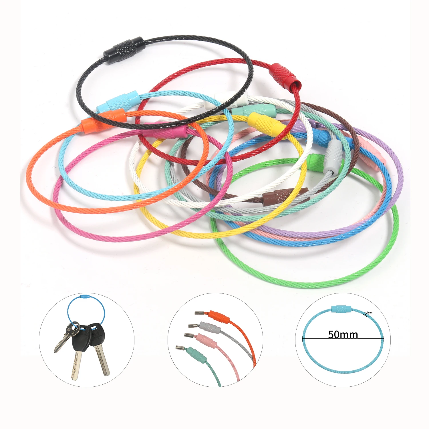 10pcs Colorful Stainless Steel Wire Keychain Cable Key Ring Loop Connector for Hanging Luggage Tags ID Tags Outdoor Hiking