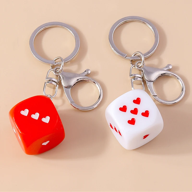 Aihua New Cartoon 3D Personality Digital Big Red Cubic Dice Keyrings for Keychains Car Key Holder Handbag Decoration DIY Jewelry