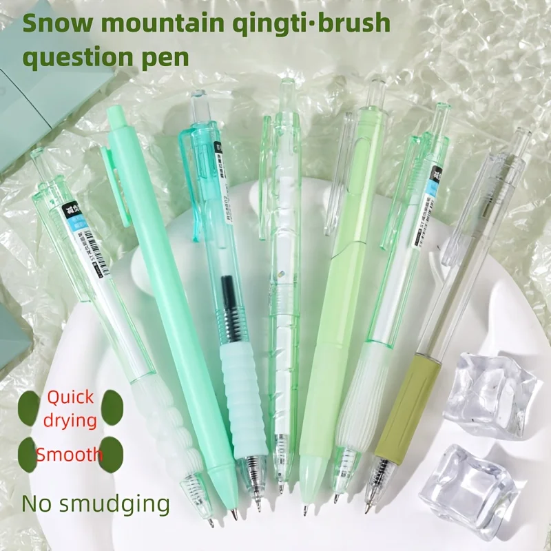 7Pcs Green Series Push-Button Neutral Pen, Quick-Drying Smooth Writing Black Ink High Appearance Themed Study 0.5mm Signature  Read more
