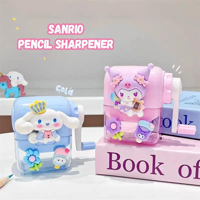Hello Kitty Kuromi Melody Hand-Crank Pencil Sharpener Kawaii Rotary Design with Storage Tray Student School Essential Stationery