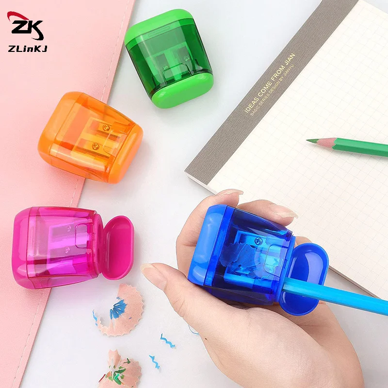 (ZYDD01) 4PCS Dual-Hole Pencil Sharpeners With Lid And Shavings Container Portable Manual Sharpener Set For Colored Pencils