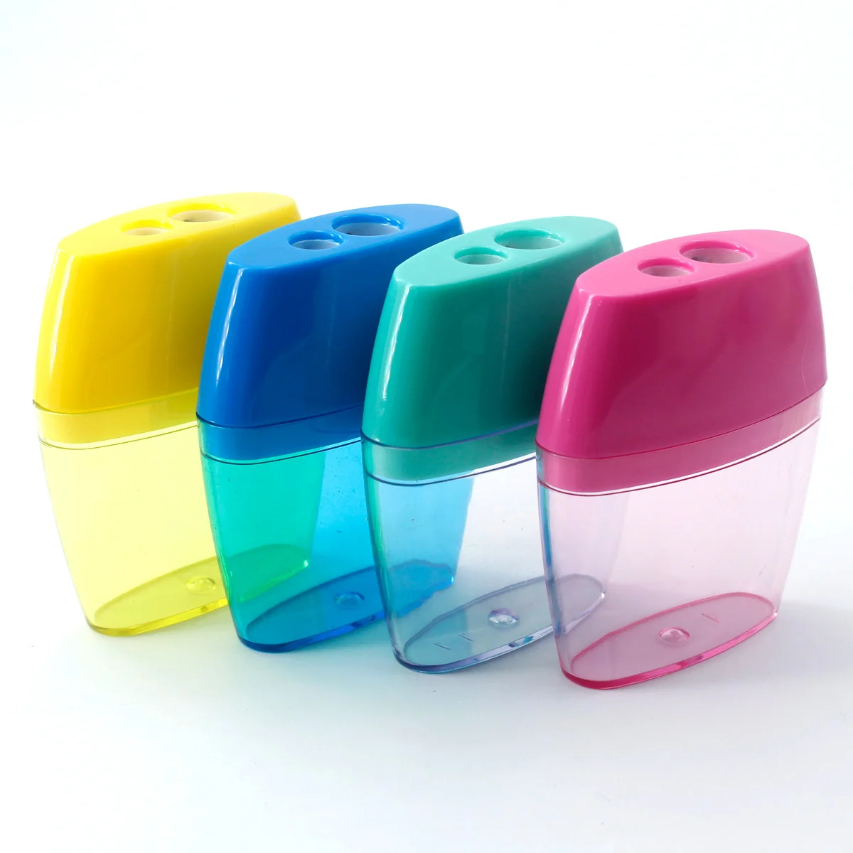 2 Holes Cylindrical Pencil Sharpener Assorted Colors Back To School Supplies For Students