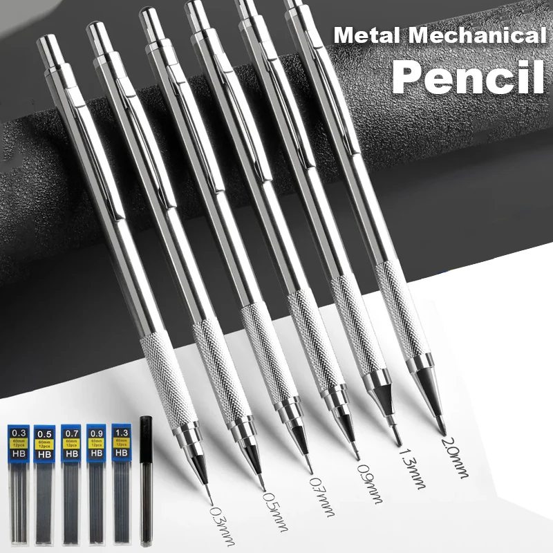 Metal Mechanical Pencil 0.3/0.5/0.7/0.9/1.3/2.0/3.0mm HB Pens For Student Drawing Writing Pen Office School Stationery Supplies  Read more