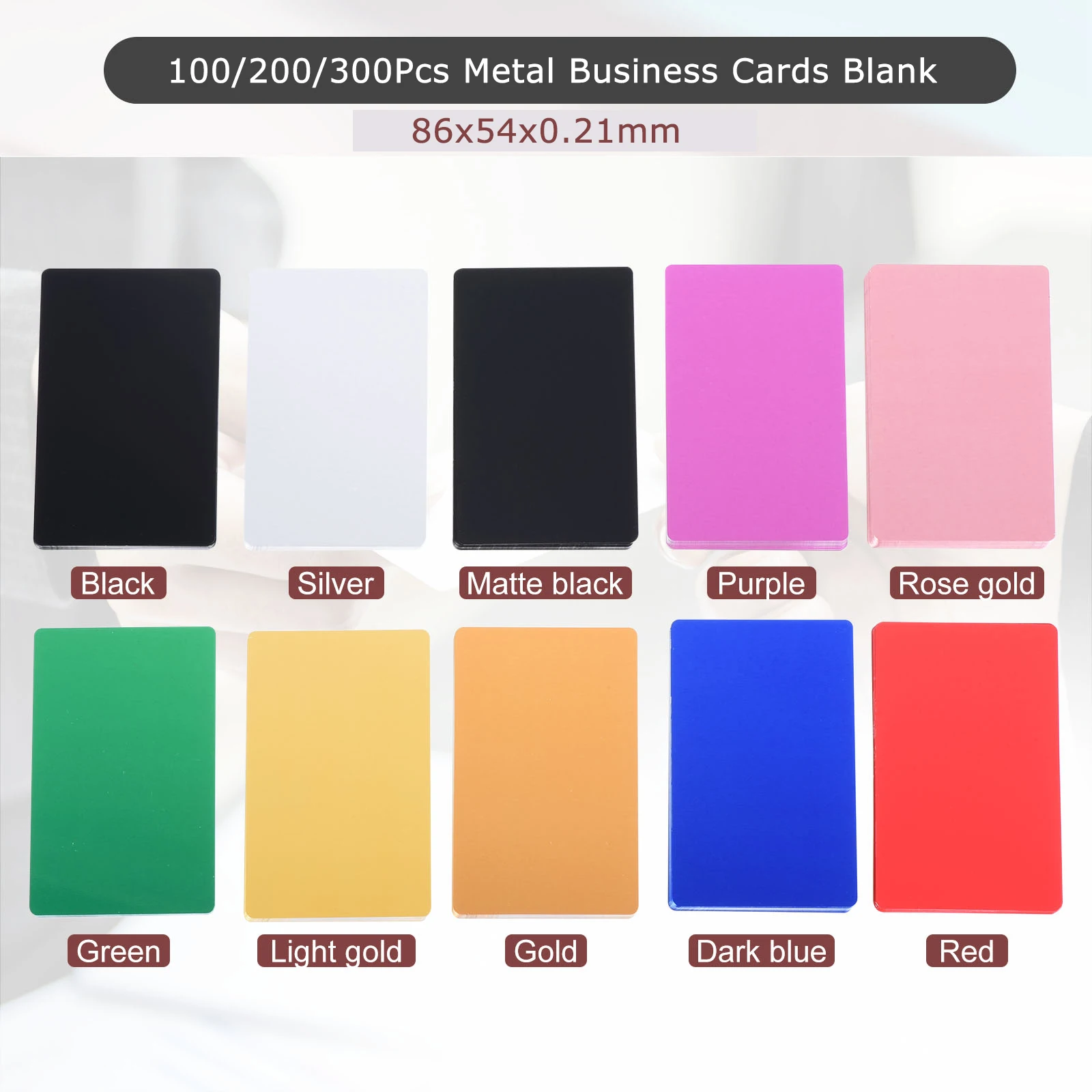 100/200/300Pcs Blank Metal Business Cards 0.21mm Thick 3.4x2.1 Inch Aluminum Laser Engrave Printable Name Card for Custom DIY