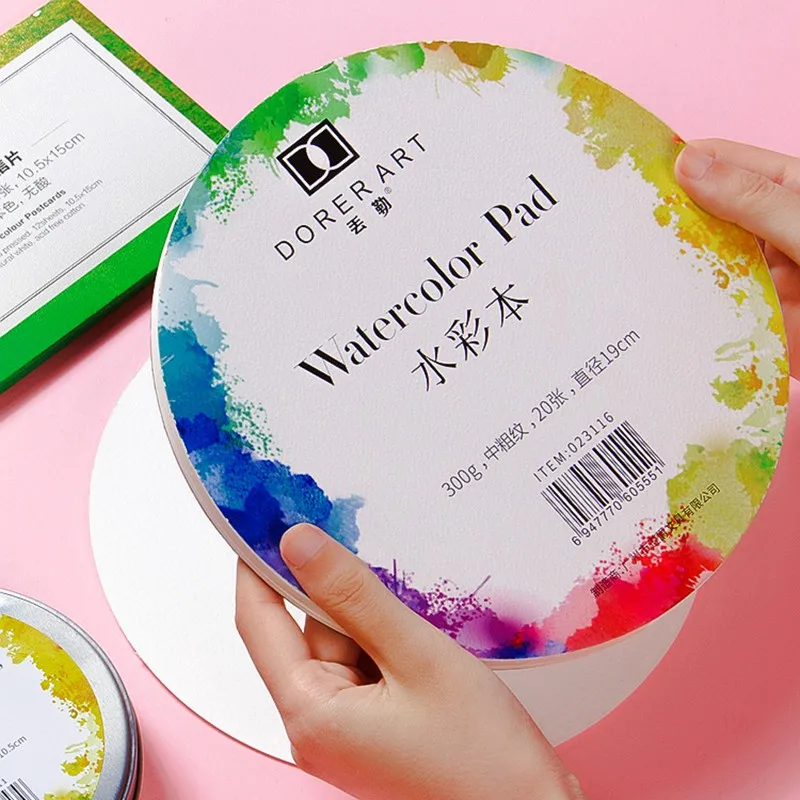 Dorerart Round Cotton Watercolor Paper Pad Postcard 300g Aquarelle Professional Painting Paper Hand Painted Aquarel Art Supplies